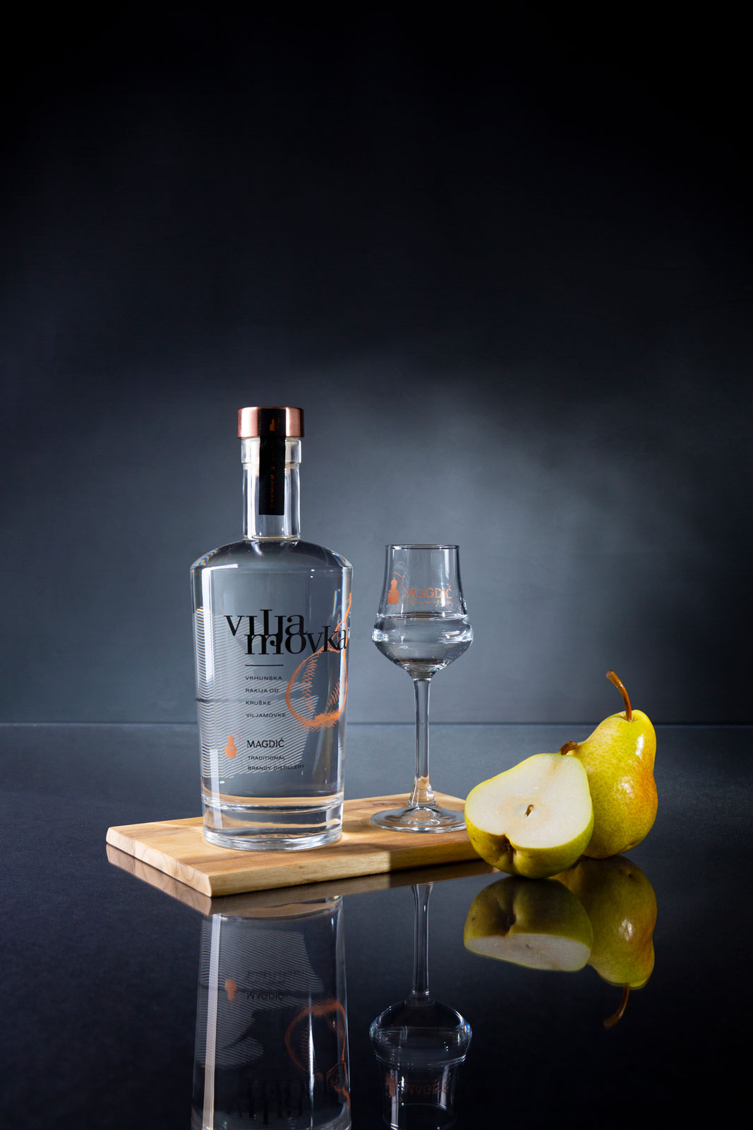 Rakija od Williams krušaka, voća koje u svijetu europskih destilata s pravom nosi titulu ‘kraljice’, predstavlja vrhunsku harmoniju tradicije, strasti i precizne proizvodnje. Magdić Premium viljamovka odlikuje se specifičnom bogatom aromatikom i zemljanim notama koje su prepoznatljive karakteristike sorte i predstavljaju najveći izazov za proizvođače.